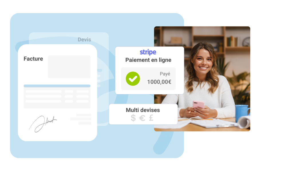 Transformez vos devis, commandes ou livraison en factures. Créez des factures design et personnalisées à votre image. Envoyez-les en un clic, suivez leur statut, relancez vos impayés.